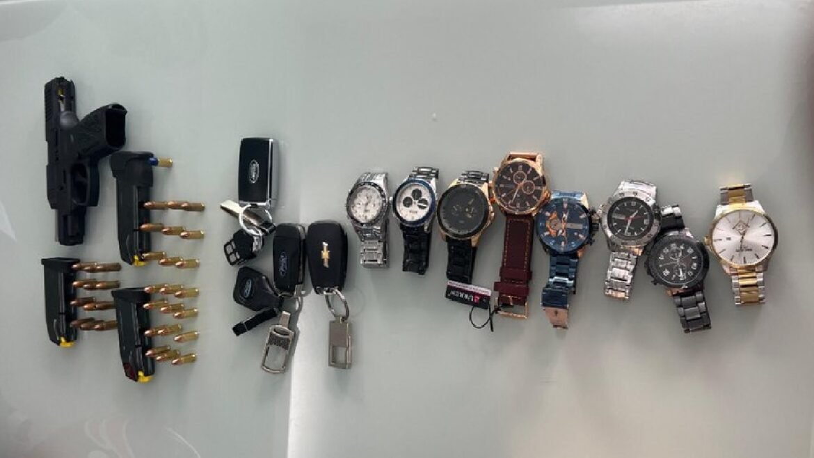 Duas prisões em flagrante. Apreensões de cinco armas de fogo, munições, documentos, aparelhos eletrônicos e artigos de luxo.