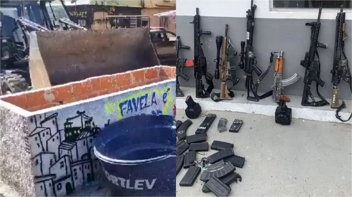 Pelo menos sete fuzis, munições e granadas foram apreendidos em posse dos criminosos.
