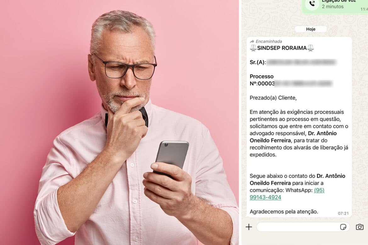 Golpistas estão utilizando processos judiciais reais para aplicar golpes em aposentados do ex-território de Roraima pelo WhatsApp. Desde 2024, criminosos se passam por representantes do Sindicato dos Servidores Públicos (Sindsep) de Roraima e exigem pagamentos por supostos “alvarás de liberação” de indenizações, citando processos autênticos para convencer as vítimas.