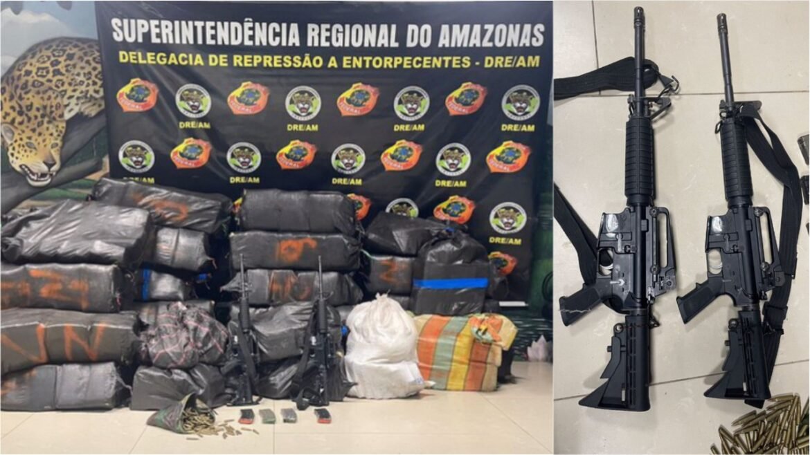 A Polícia Militar do Amazonas (PMAM), por meio da Força Tática, apreendeu, na noite de quinta-feira (9), espingardas, munições e drogas. A apreensão foi realizada durante o cumprimento da Operação Fronteira Mais Segura, em uma área de mata, no município de Rio Preto da Eva (a 57 quilômetros de Manaus).