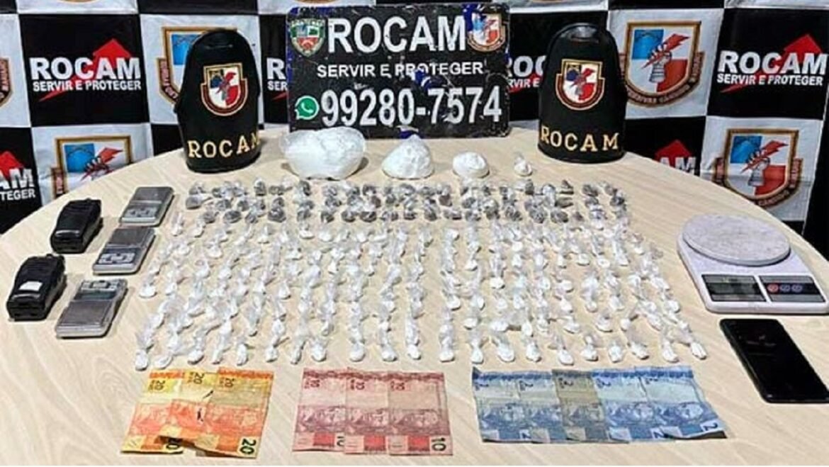 De acordo com os policiais, os suspeitos tentaram fugir, mas foram localizados após buscas na região. Ao serem pegos, eles foram revistados e foi encontrada uma porção grande de cocaína, duas porções médias de cocaína, três balanças de precisão, uma balança de precisão grande, dois rádios comunicadores, um aparelho celular, 62 trouxinhas de maconha e R$ 100 em espécie.