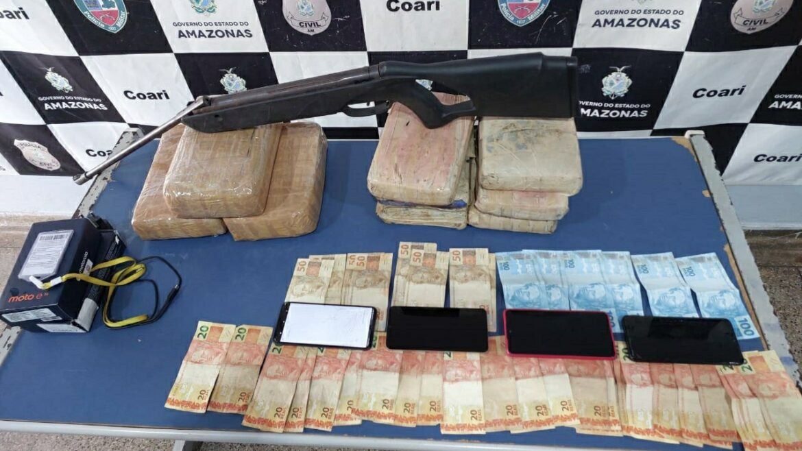 Policiais militares do 3º Batalhão de Polícia Militar (BPM), prenderam três homens de 18, 27 e 23 anos e uma mulher de 23 anos, nesta terça-feira (14/2), em Coari, a 363 quilômetros de Manaus. Com os suspeitos foram apreendidos 12 quilos de skunk, armas e dinheiro. Parte da droga foi localizada dentro de uma caixa de isopor, em uma embarcação.