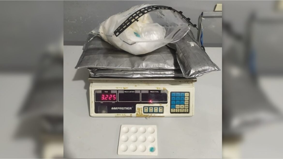 Foram apreendidos cerca de 3 kg de cocaína. A mulher foi presa em flagrante e encaminhada à Justiça Estadual, onde poderá responder pelo crime de tráfico de drogas.