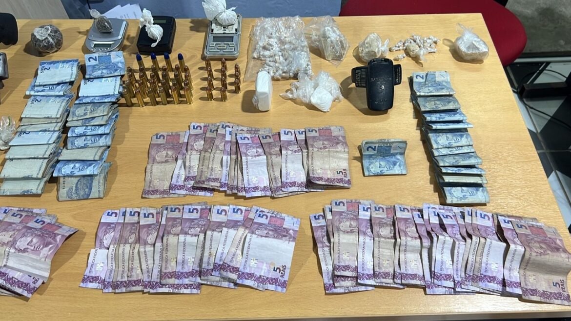 “Em ato contínuo, eles empreenderam fuga em direção a mata, e um deles deixou cair uma arma de fogo e munições. Por se tratar de uma vila de quitinetes, continuamos a averiguação na localidade. Em uma delas, se encontravam Gabrielly e Naiara, além de diversas porções de cocaína e maconha, R$ 710 em espécie, aparelhos celulares, três balanças de precisão e uma tornozeleira eletrônica”, disse.