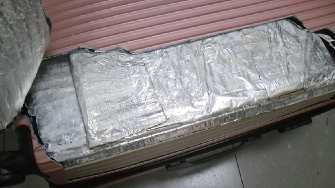 Em três das quatro malas, ficou constatada substância orgânica nas estruturas. A suspeita foi conduzida à delegacia da PF onde foi presa em flagrante, após os exames periciais constatarem que a suspeita transportava quase 21kg de cocaína ocultos nas estruturas dos objetos.