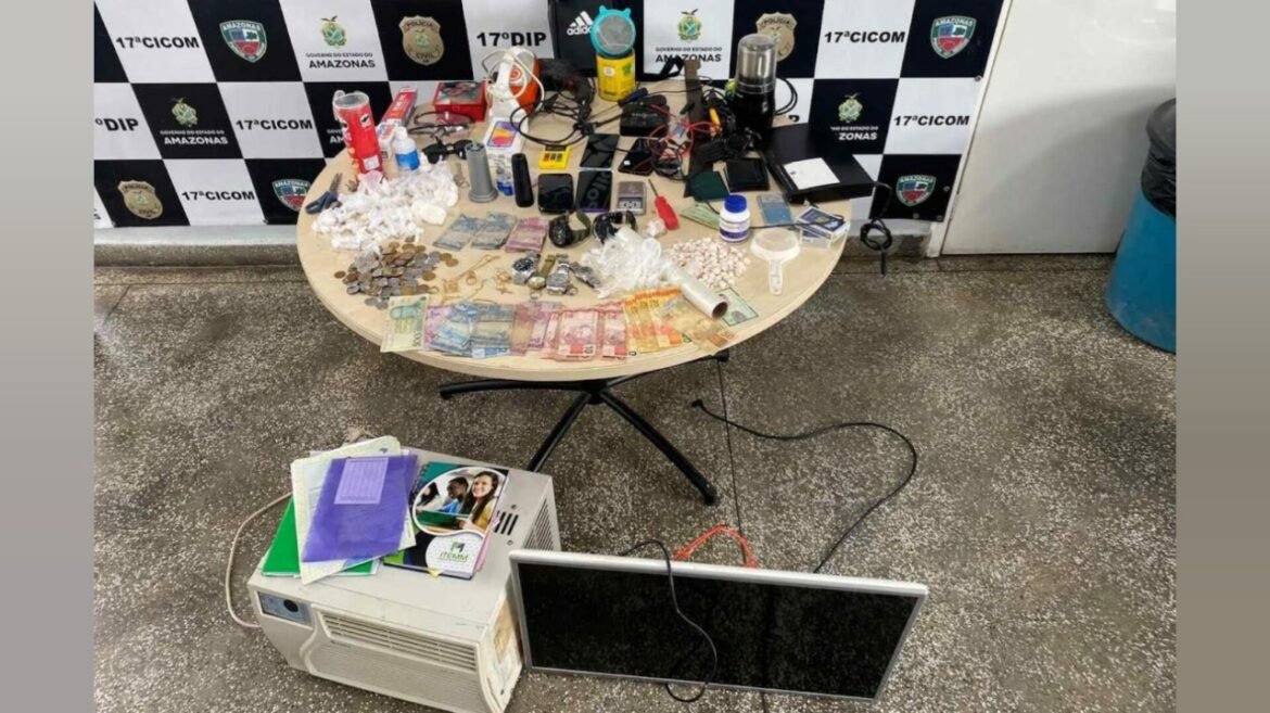 Com o trio, a polícia encontrou várias trouxinhas de substâncias entorpecentes e objetos utilizados como pagamento do material ilícito, como aparelhos e ar condicionado, monitor de computador, notebook e celulares, além que uma quantia em espécie.
