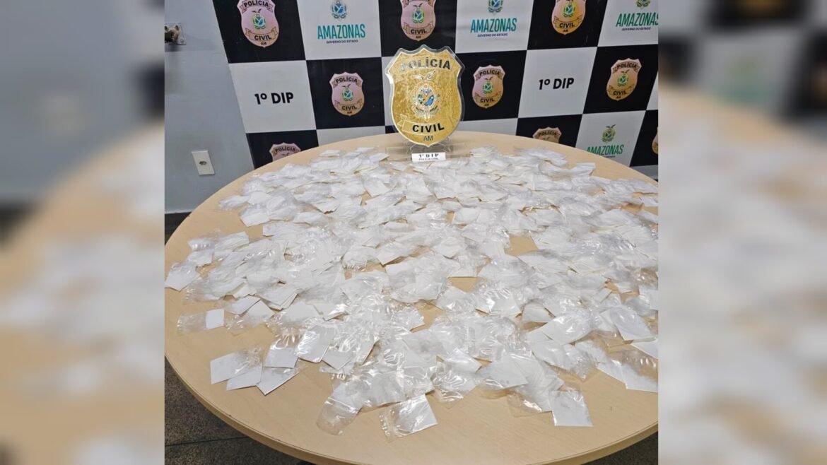 Bruno Matheus dos Santos Azize, de 27 anos, foi preso nesta sexta-feira (15), por posse de 1,5 mil trouxinhas de cocaína, que seriam distribuídas no bairro Praça 14 de Janeiro, zona Sul de Manaus.