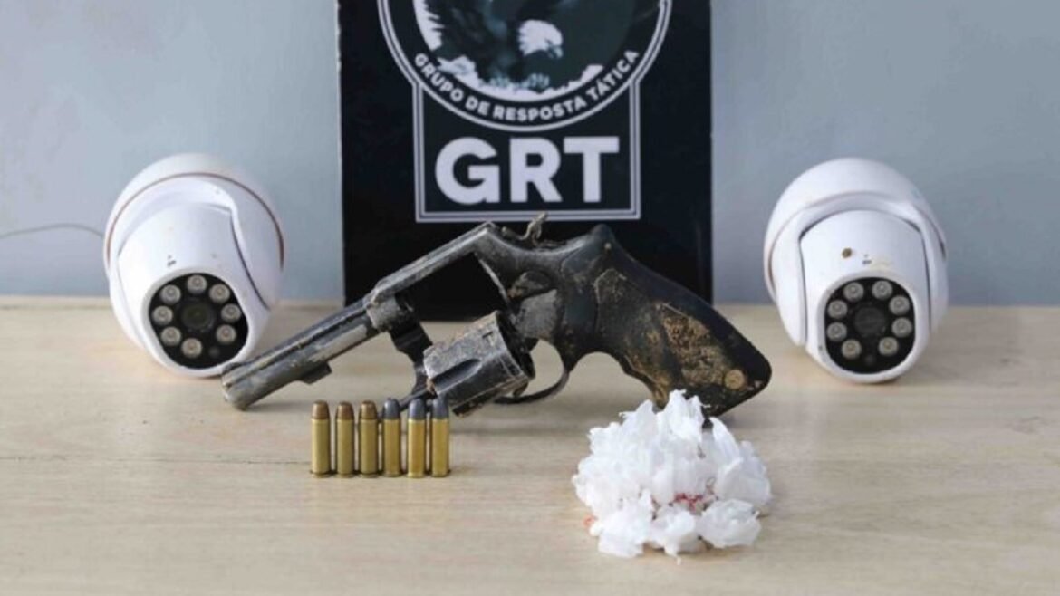 Alexmar Assunção Ramos, de 26 anos, foi preso na manhã dessa quinta-feira (18), no bairro Colônia Terra Nova, na zona Norte de Manaus, por porte ilegal de arma de fogo e tráfico de drogas. Ele tinha um mandado de prisão em aberto por homicídio expedido na Comarca do Município de Borba, cidade a 151 quilômetros da capital amazonense.. Para monitorar a presença da Polícia, o detido usava duas câmeras, que também foram apreendidas, instaladas em postes de energia.