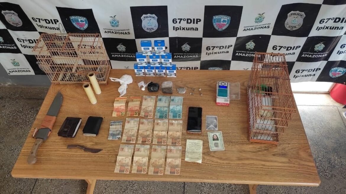 Após a revista, foram encontrados com os suspeitos várias substâncias entorpecentes e um a quantia em dinheiro. De acordo com a PM, eram